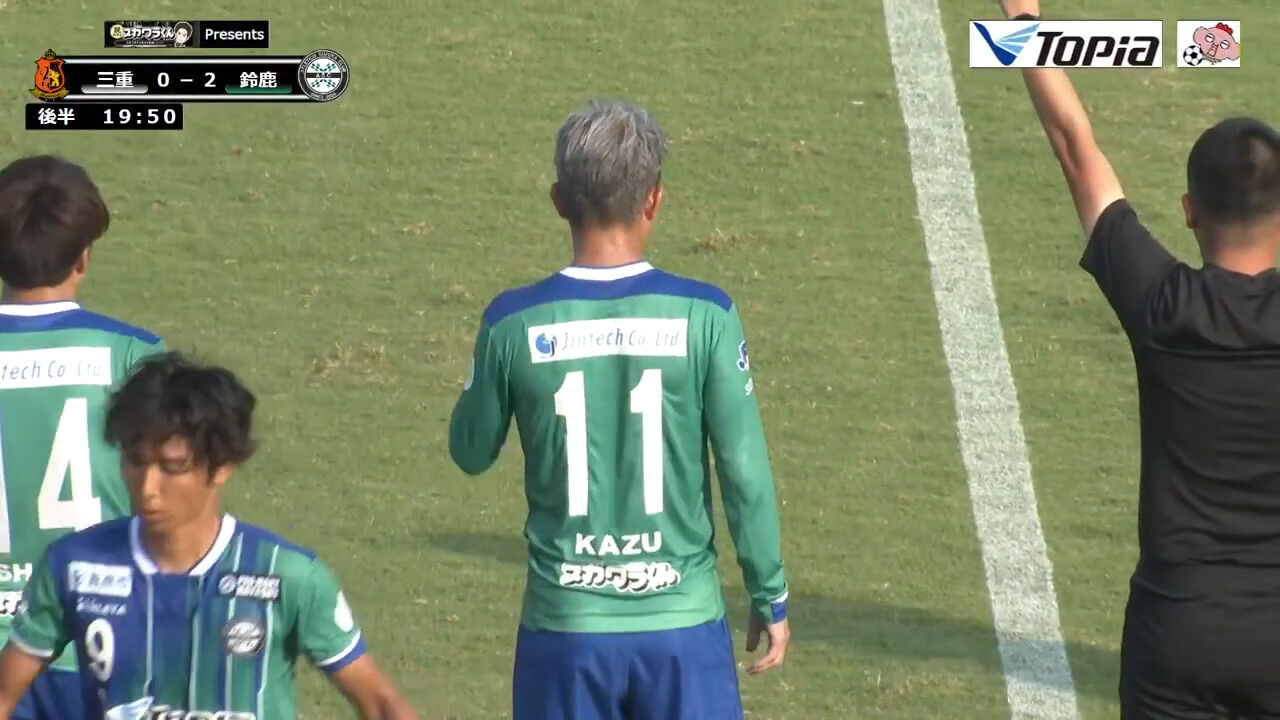 試合は2-0でアトレチコ鈴鹿クラブが勝利。三浦は3試合連続の途中出場となり、自身が持つ最年長記録を「57歳195日」に更新した。
