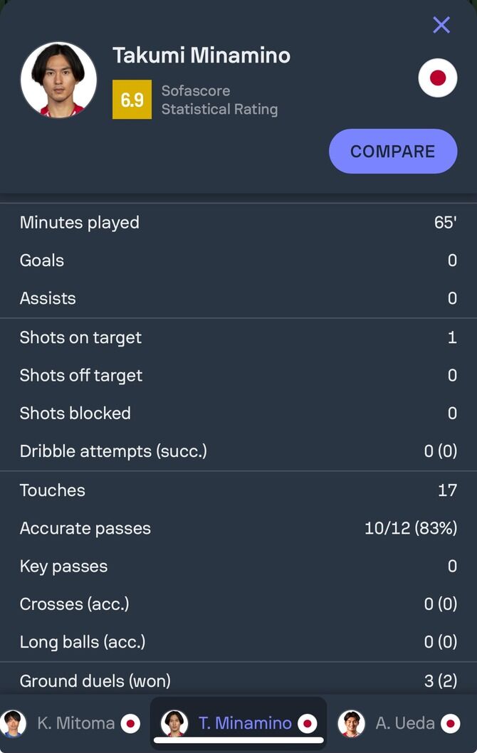 【悲報】南野拓実さん、中国戦神スタッツだったのにバーレーン戦のスタッツが一気にグロにwwwwww