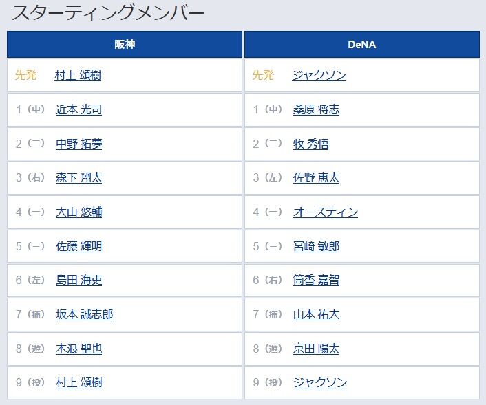 5宮崎 9筒香 2山本 6京田 1ジャクソン