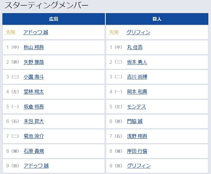 【巨人】 【広島】