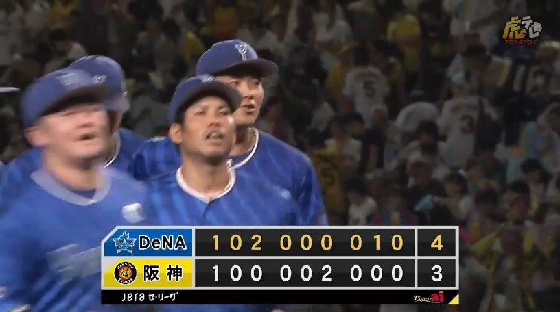 【阪神対DeNA20回戦】DeNAが4-3で阪神に勝利!3位阪神に再び2差!8回に桑原が決勝弾!阪神は2連勝ならず、首位・巨人と3.5差に…