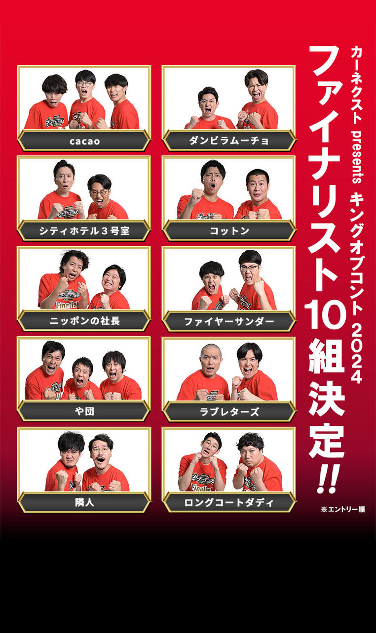 “コント芸日本一”を決める『キングオブコント2024』のファイナリスト10組の発表会見が12日、同大会の公式YouTubeで行われた。