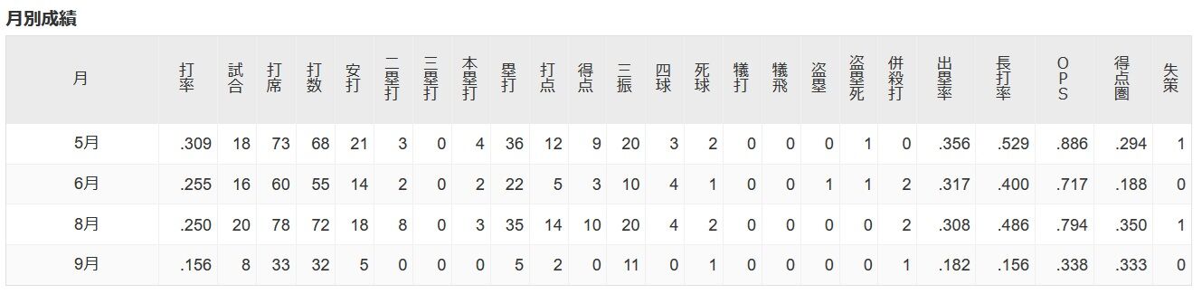【悲報】カープ末包さんの9月成績.156本塁打0打点2のOPS.338