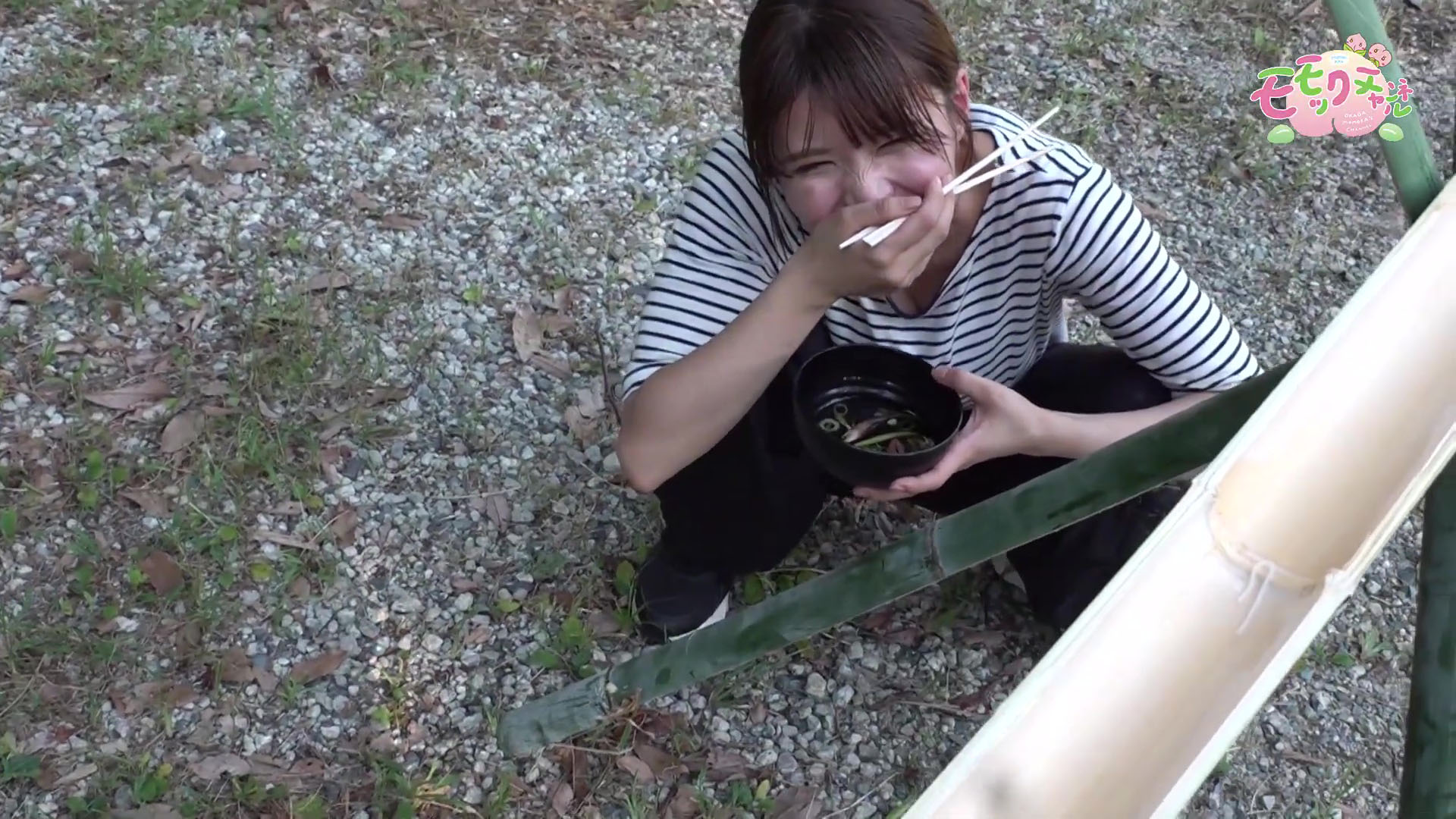 竹を藪から切り出してそうめん流しの台を自力で作成した岡田桃佳アナの巨乳が見えていました! バドミントンでは激しい乳揺れシーンも! GIF動画x3付きで! [2024年9月12日 岡田桃佳の【モモック】チャンネル]