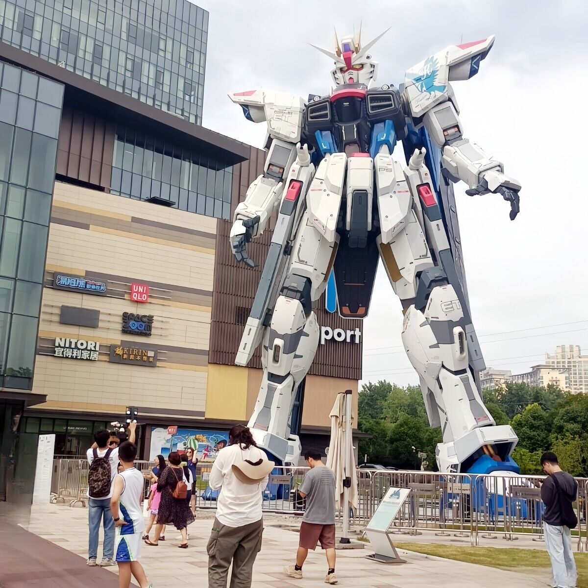 中国メディアの澎湃新聞によると、強い台風13号(バビンカ)が16日、中国・上海に上陸する中、ネット上では同市の商業施設「ららぽーと」前にある高さ約18メートルの実物大フリーダムガンダム立像が台風の影響で半身を残すのみになったとするデマが拡散した。