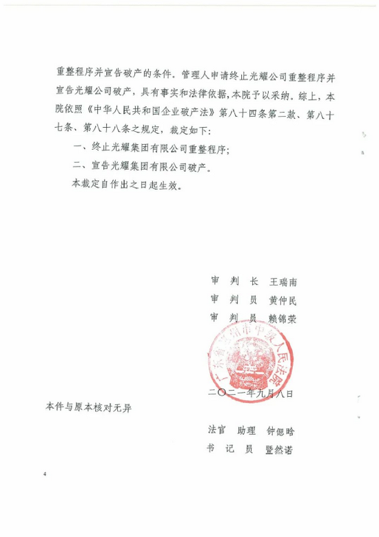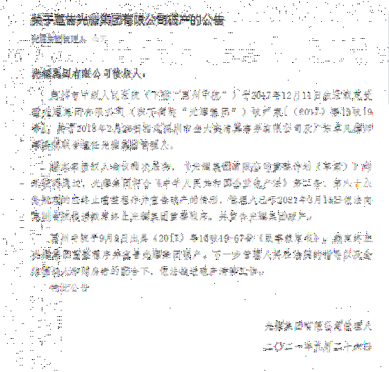 9月26日、トップ100企業の不動産会社である光耀集団が正式に破産を宣言しました。