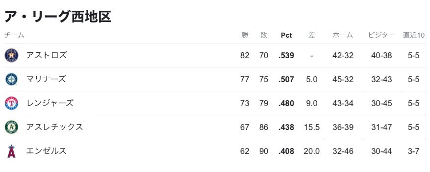エンゼルス 62勝90敗 勝率.408(ア・リーグ西地区最下位)