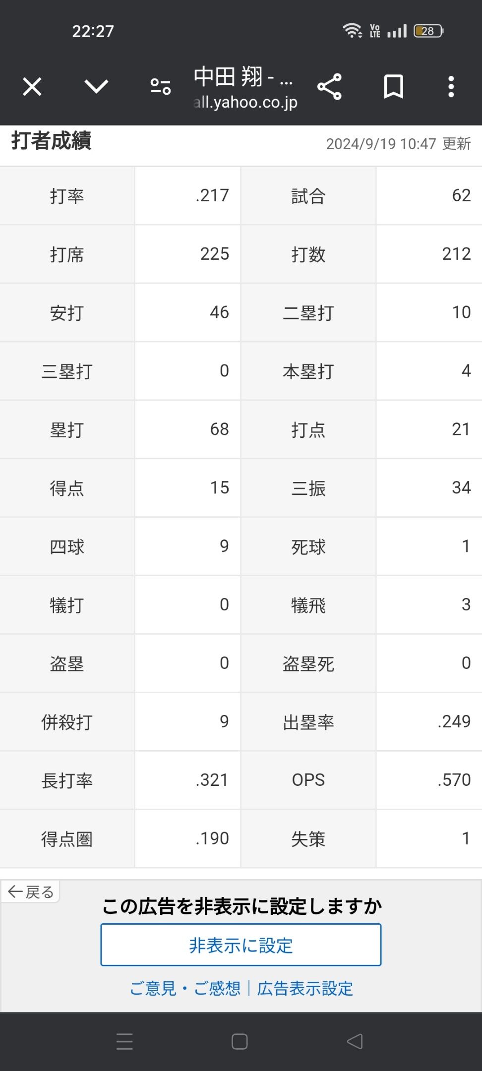 中田翔(年俸3億)「打率.217(212-46)4本 21打点 OPS.570」←これについての率直な感想www