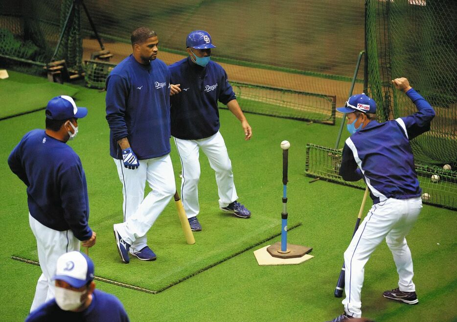 就任以来、立浪監督の打撃指導は日常の光景となった。