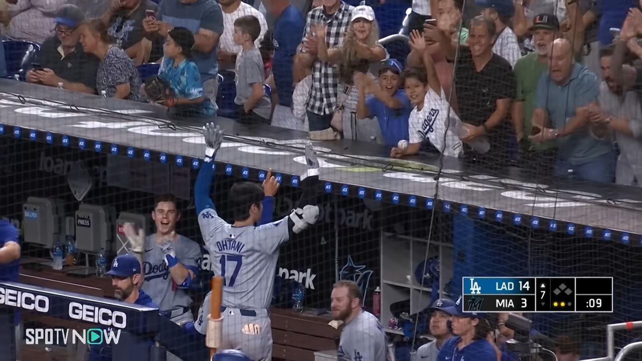 話題となったのは、現地時間9月19日にドジャースが敵地に乗り込んだマーリンズ戦での一幕。ビジターチームの「1番・DH」で先発出場した大谷が7回2死三塁の局面で迎えた第5打席にシーズン50号となる一発を放った直後だった。