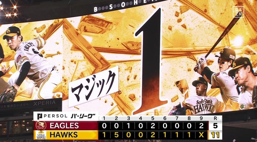 優勝マジックは1となりました❗#sbhawks👇パ・リーグSpecial公式https://t.co/yavA5iMWsu pic.twitter.com/UJnG89pR3y