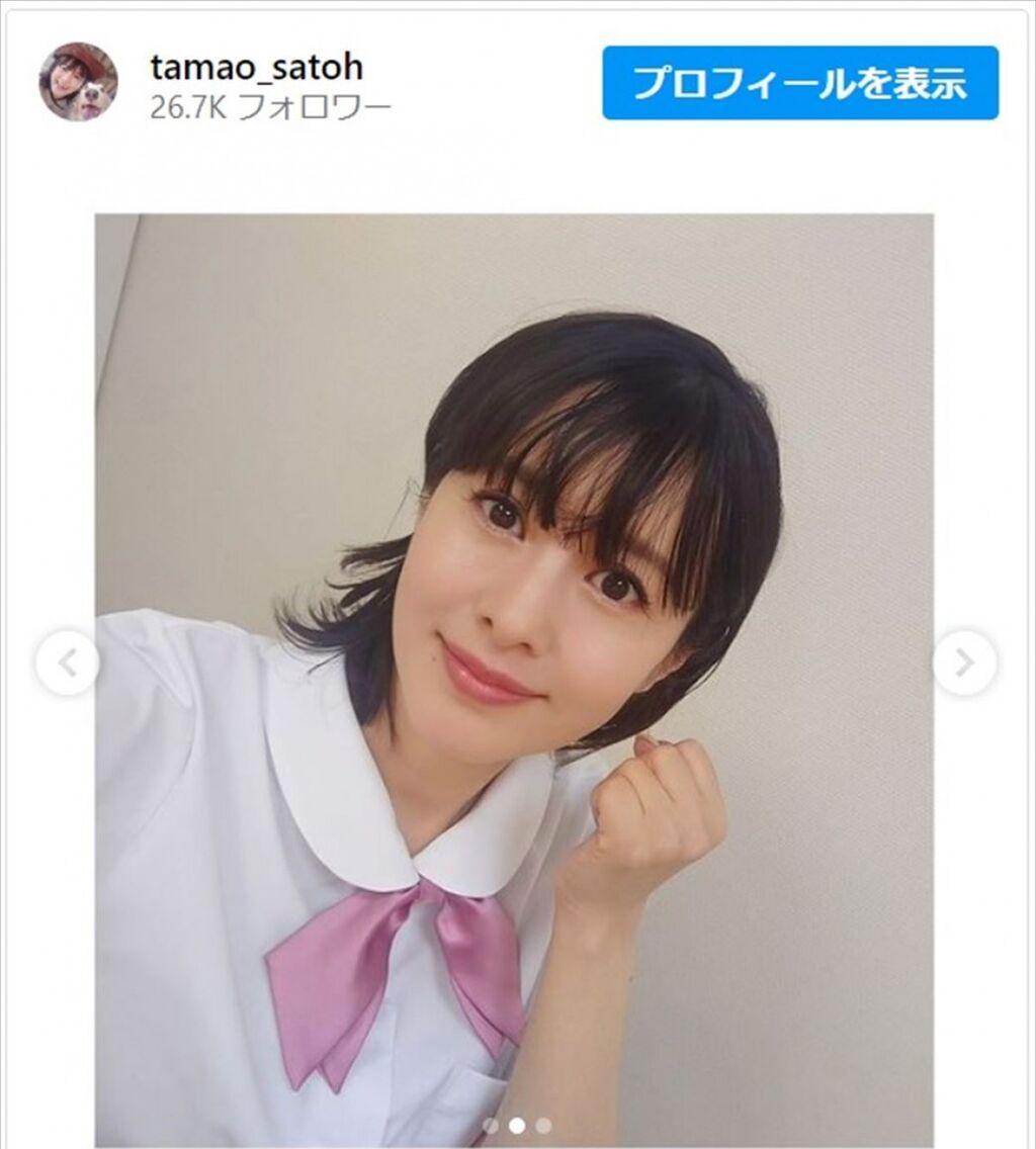 タレントのさとう珠緒が27日、自身のインスタグラムを更新。テレビ番組で着た制服姿に「かわいい」と反響が集まっている。