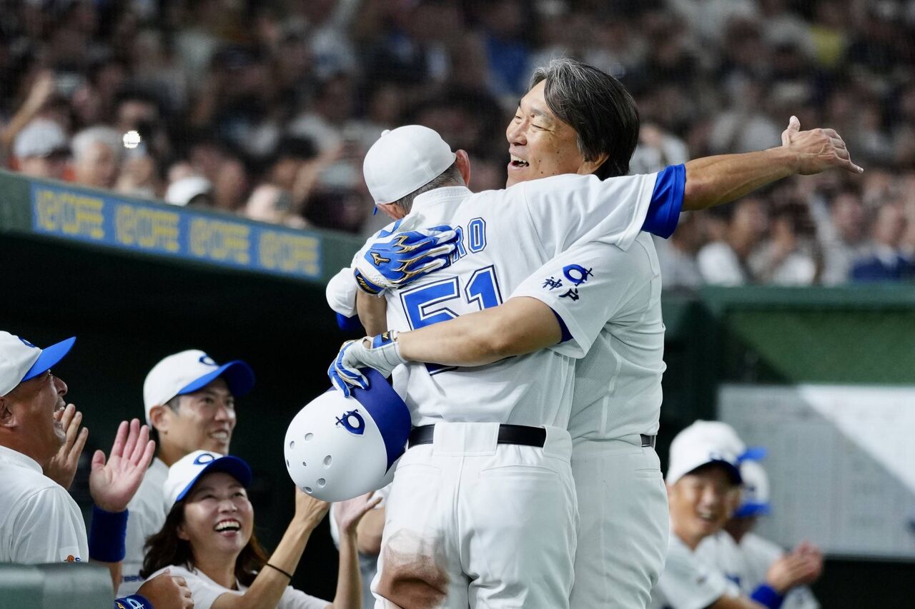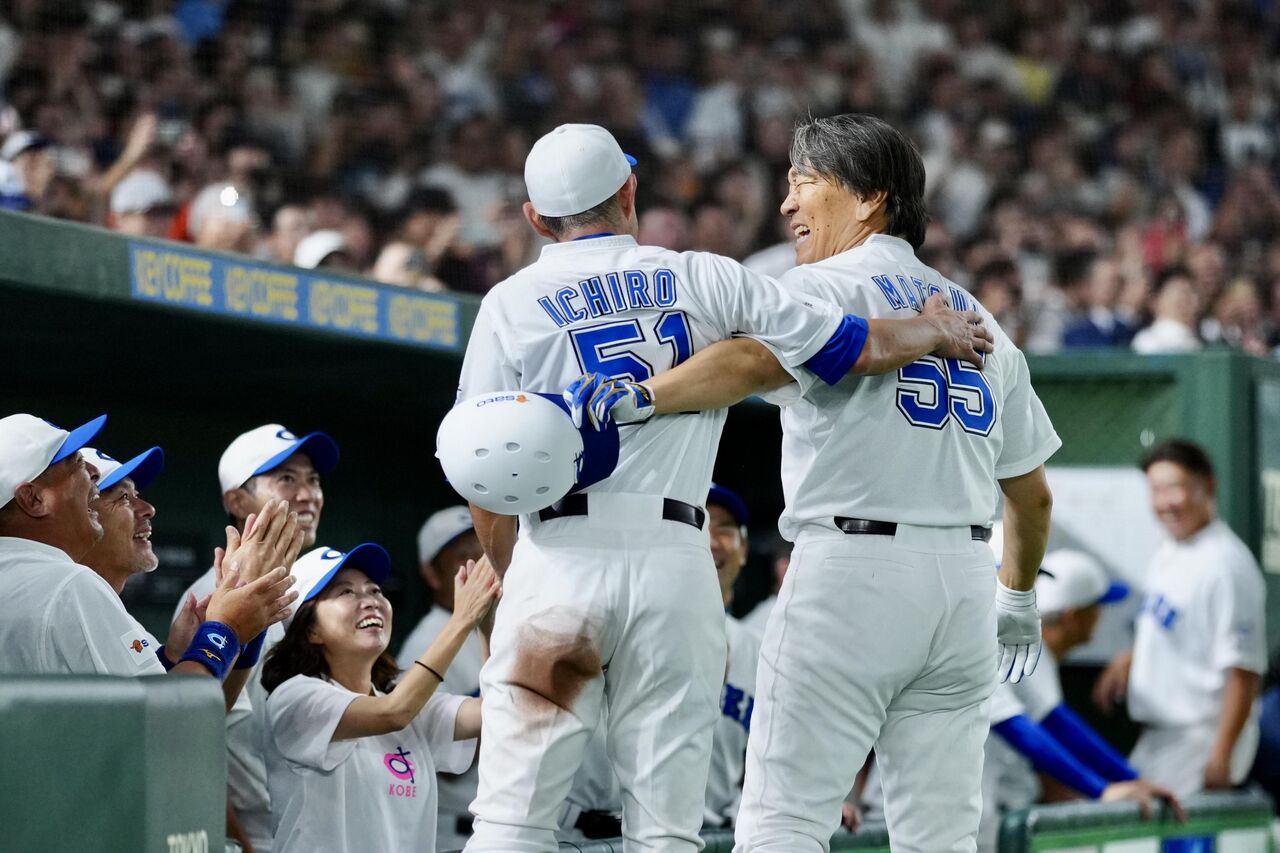 50歳コンビ躍動 イチロー氏は最速137キロ3失点で完投!松井秀喜氏は豪快3ラン放つ ふたりで抱擁