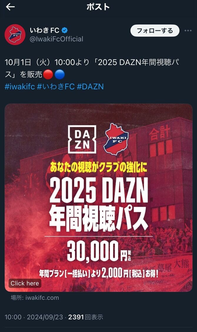 【速報】DAZNサッカー年間パスが27000円から30000円に値上げwwwwwwwwwwwww