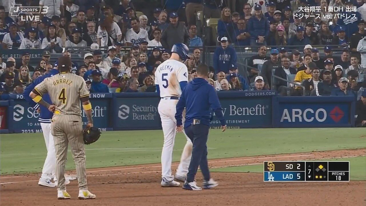 ドジャース・フリーマンにアクシデント 走塁で足首を捻って負傷交代…