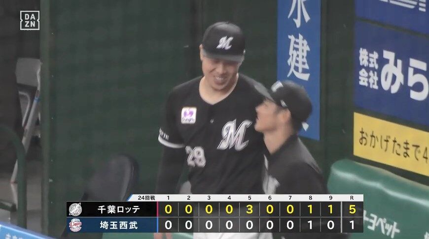 【西武対ロッテ24回戦】ロッテが5-1で西武に勝利し連敗ストップ!佐藤が五回に先制3ラン!先発の西野は八回途中5安打1失点で9勝目!