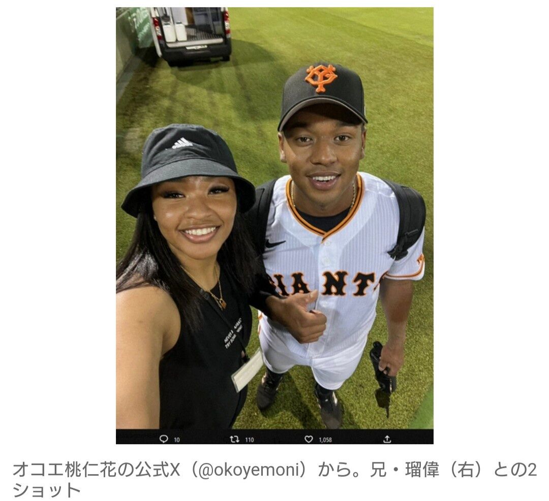 オコエ瑠偉外野手(27)妹で、バスケットボール女子のオコエ桃仁花(25=ENEOS)が自身のX(旧ツイッター)を更新。兄を祝福した。