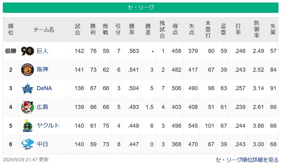 【9/29】●●●●●●●●●●●●●●中日 ●●●●●●●●●●●●●●東京 ●●広島 横浜○