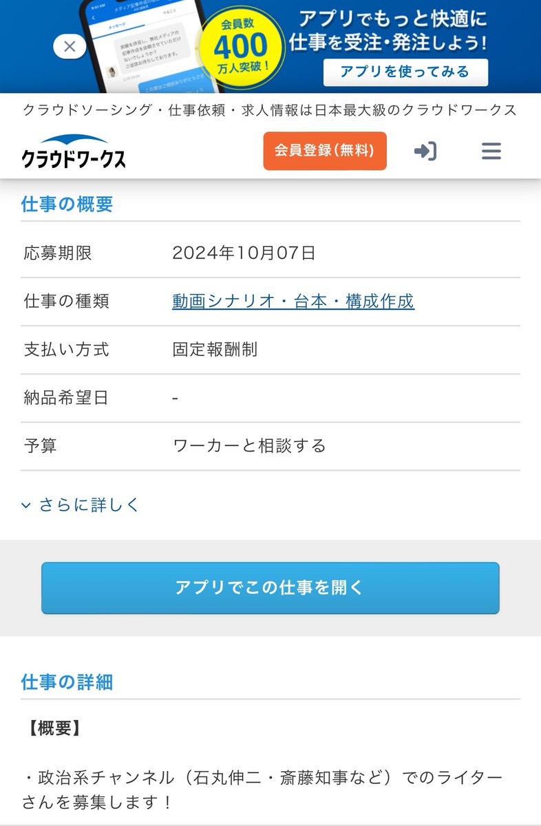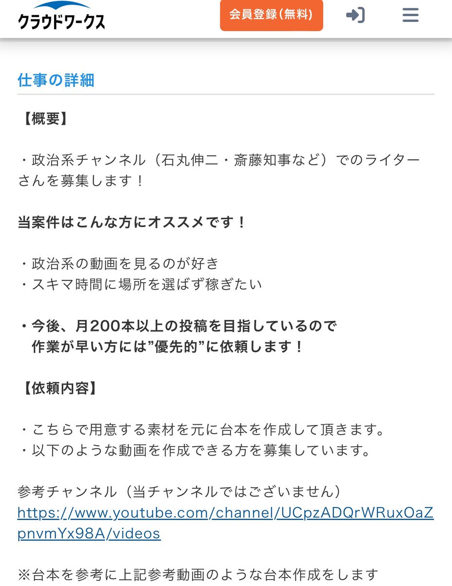 クラウドワークスって前はバイトネトウヨ募集してたような