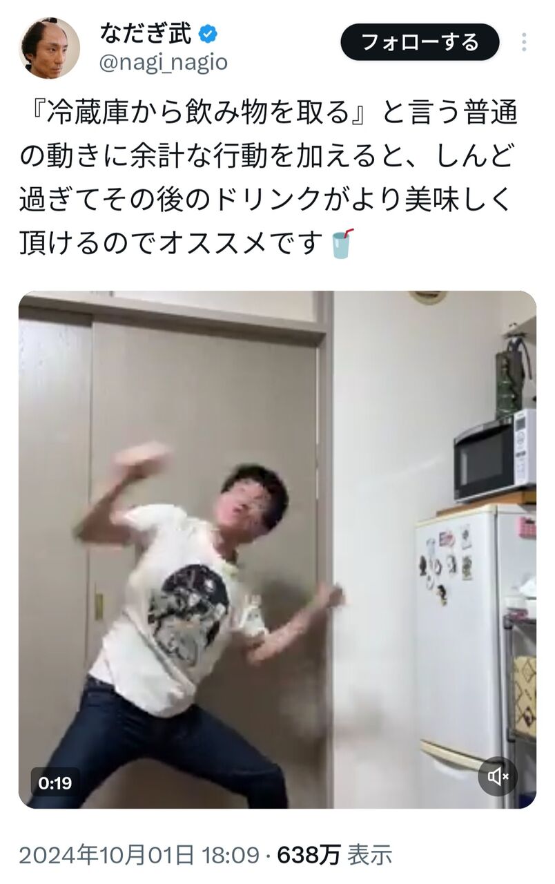 『冷蔵庫から飲み物を取る』と言う普通の動きに余計な行動を加えると、しんど過ぎてその後のドリンクがより美味しく頂けるのでオススメです🥤 pic.twitter.com/ObUNZbkE7S