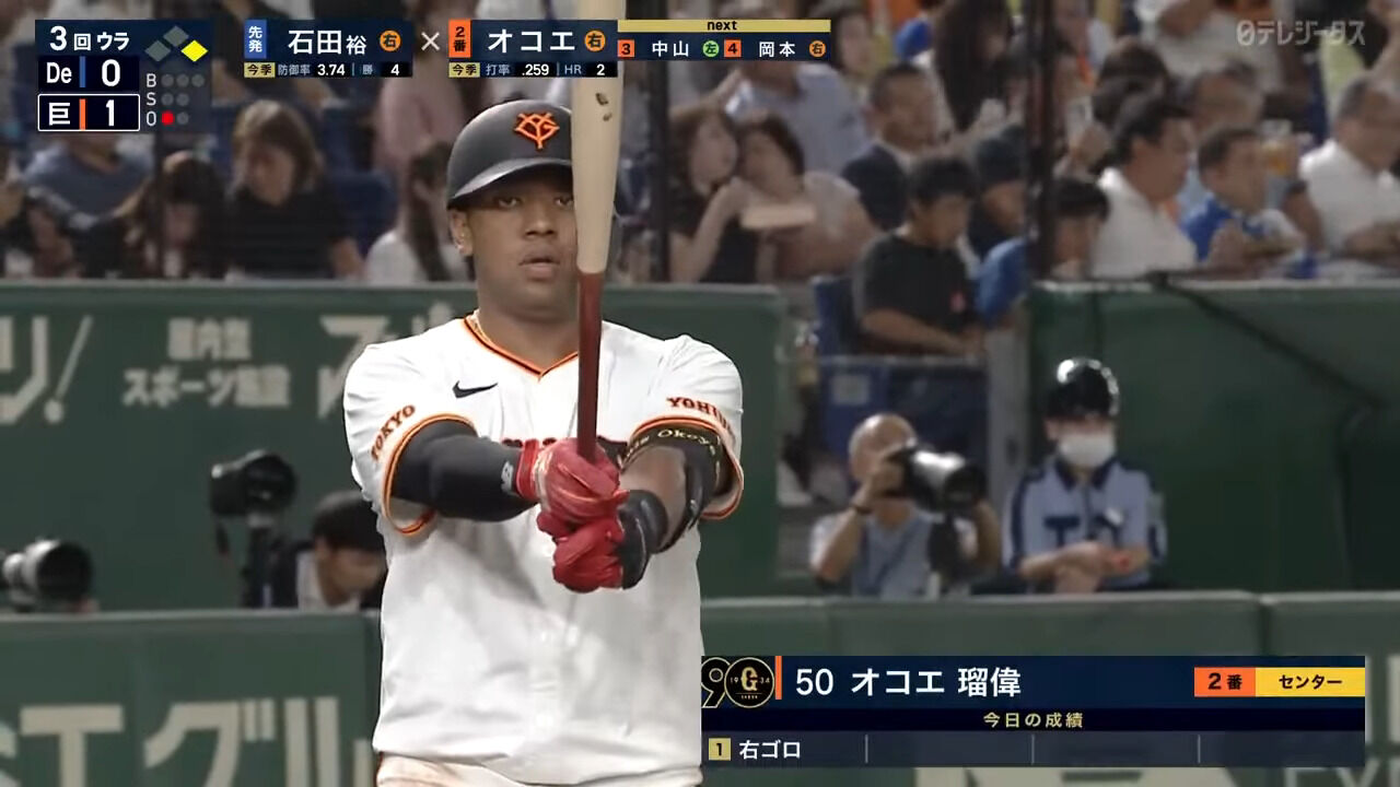 【巨人】オコエ瑠偉(27) .261 3 13 OPS.700 ←これ