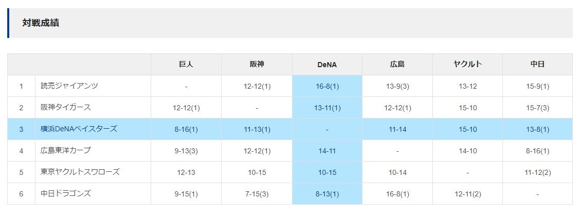 【謎】ベイスターズさん、巨人と阪神と広島に負け越してるのに3位だった