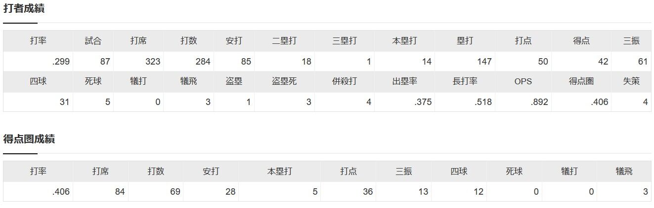 清宮(25) .299(284-85) 14 50 OPS.892←来年残しそうな成績