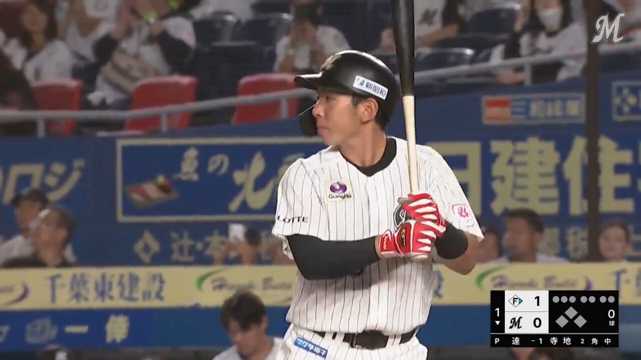初球を振り抜き2ベース!#寺地隆成 選手、プロ初打席で初ヒット!#chibalotte #MarinesBaseball pic.twitter.com/4LzijV6cji