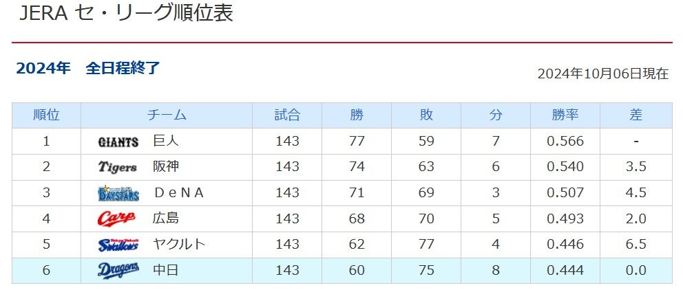 中日ドラゴンズ立浪監督、勝率.444で666達成