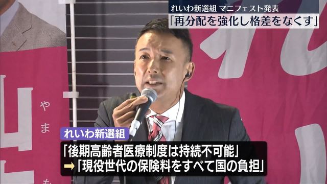 れいわ新選組は、衆議院選挙に向けたマニフェストを発表しました。消費税の廃止などにより「再分配を強化し、格差をなくす」と訴えています。
