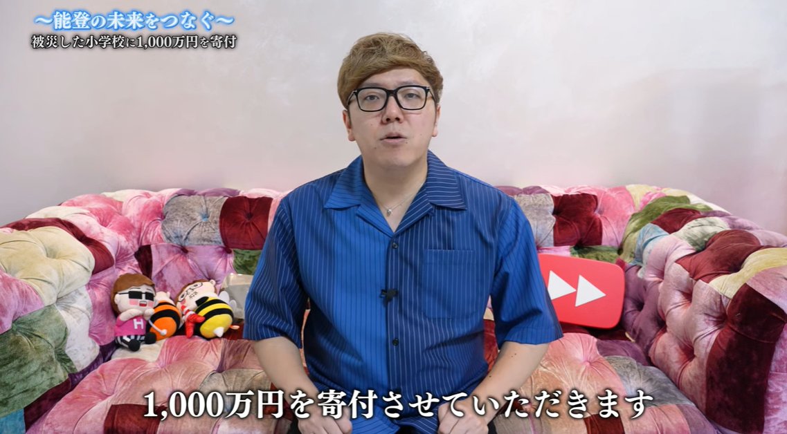 :2024/10/07(月) 01:55:38.74 ID:QLcPiAwT9.netヒカキン 被災小学校に1000万円寄付&生徒400人に特製カレー「みんなも笑顔になってよかった」