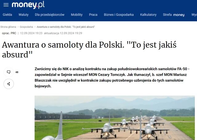 ⇒参照・引用元:『Money.pl』「Awantura o samoloty dla Polski. “To jest jaki? absurd”」