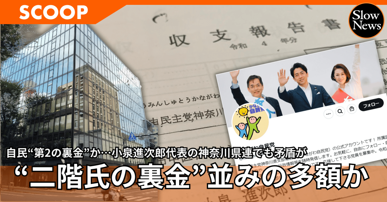 【自民“第2の裏金”を追及する②】小泉進次郎代表の神奈川県連には記載のない、出所不明の698万円が発覚!二階氏に匹敵する多額になるか|SlowNews | スローニュース