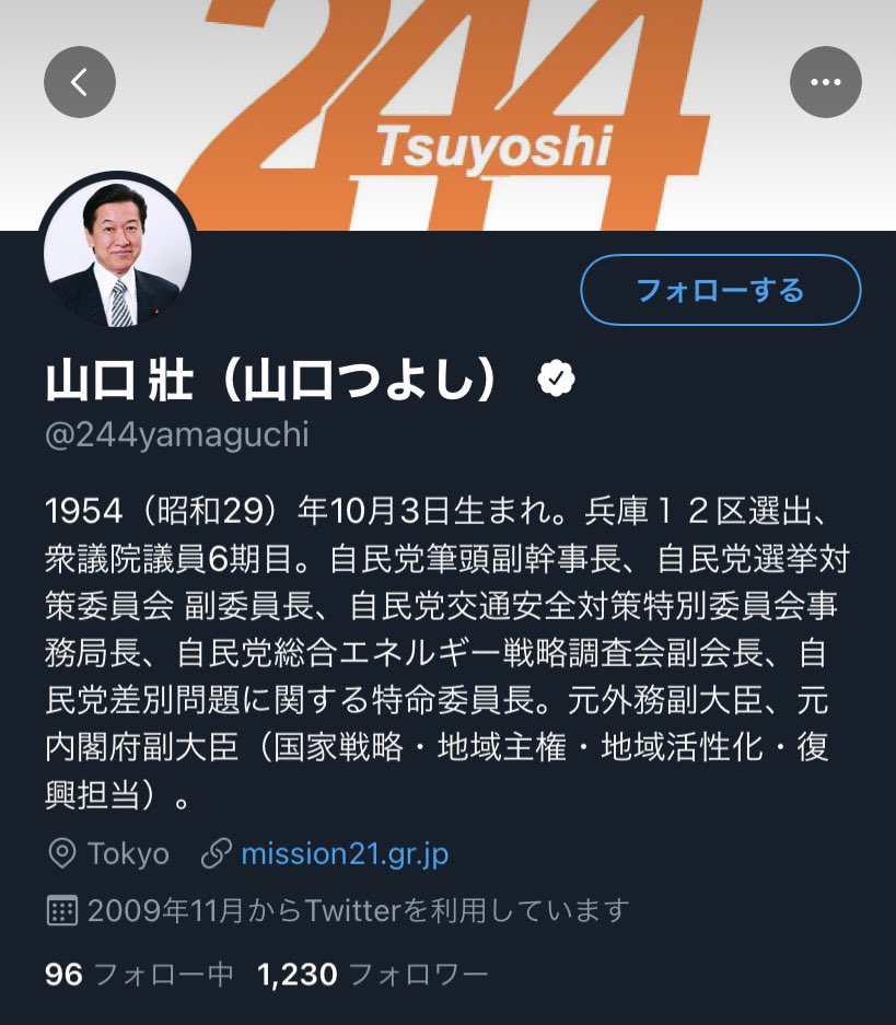 【速報】山口壯環境大臣「巨乳風俗体験ブログ」を公式Twitterアカウントでフォロー