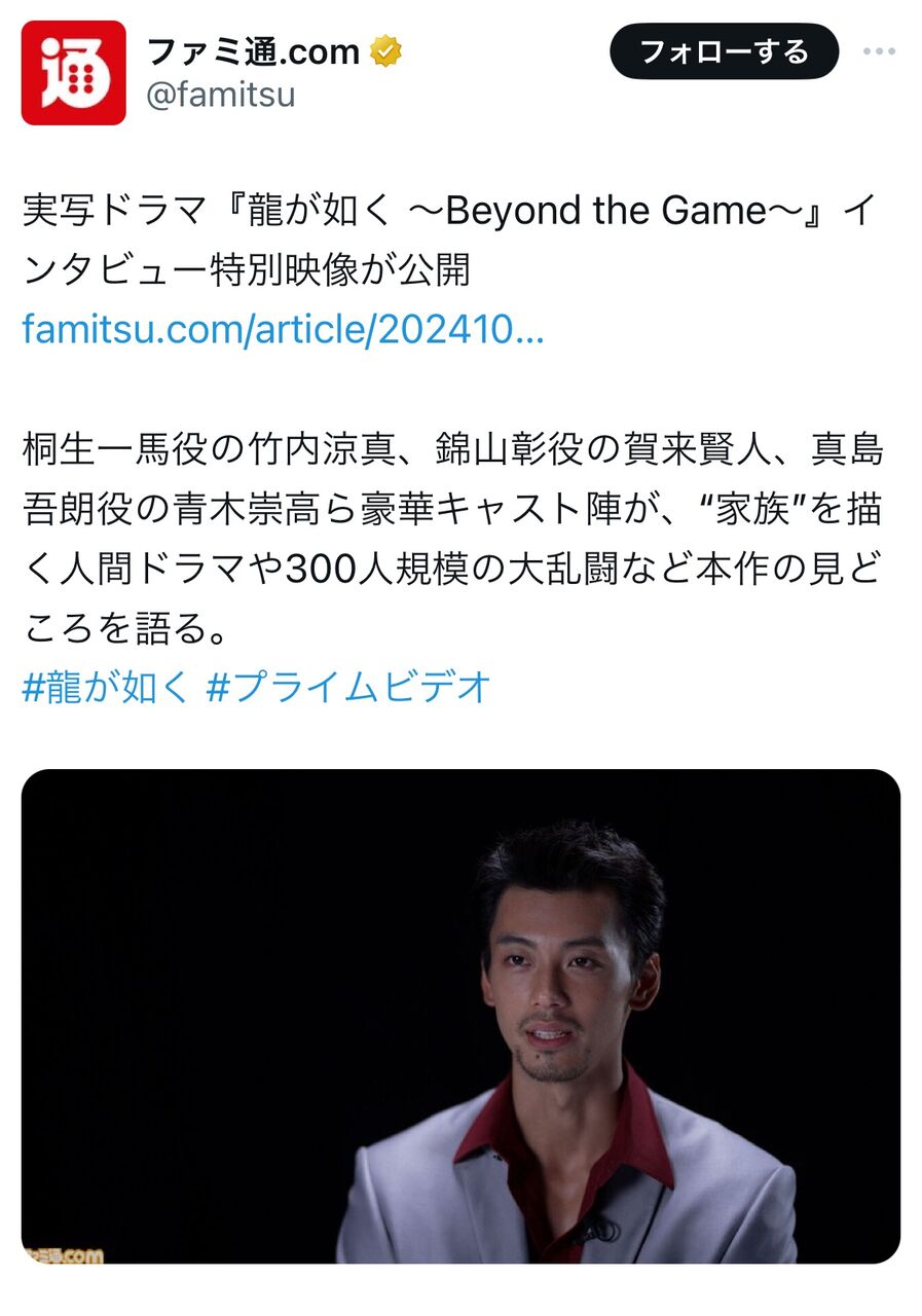 実写ドラマ『龍が如く ~Beyond the Game~』インタビュー特別映像が公開https://t.co/o68GIDa3Xa