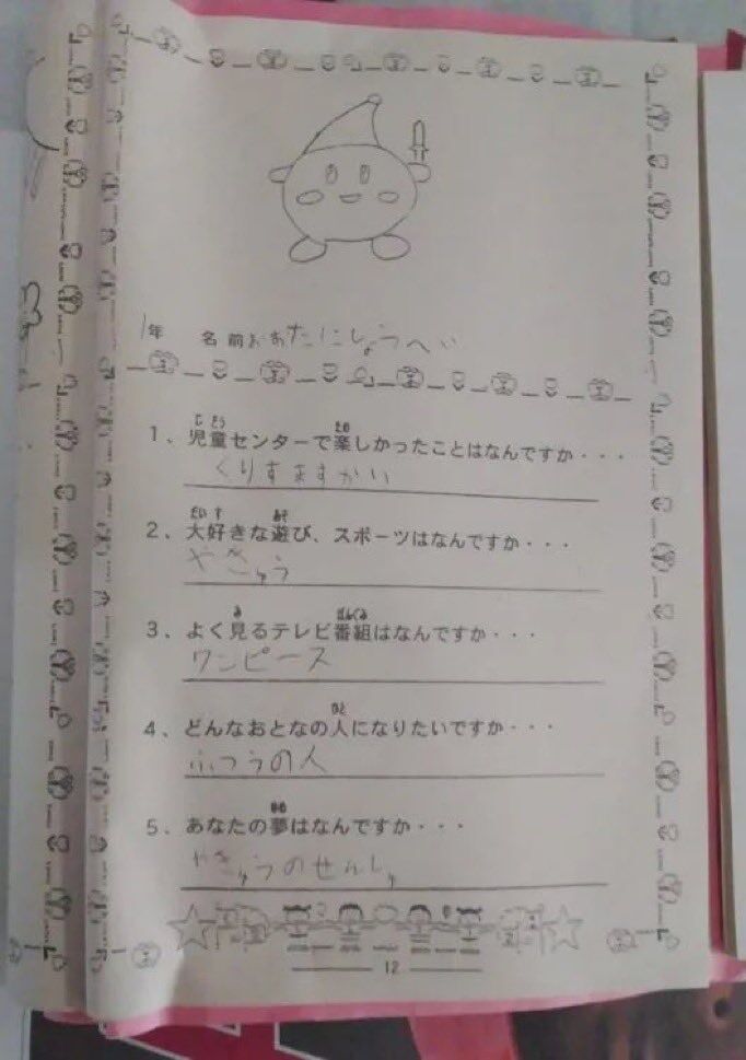 大谷翔平さんの小学1年生の時の将来の夢wwwwwwwwwwwww